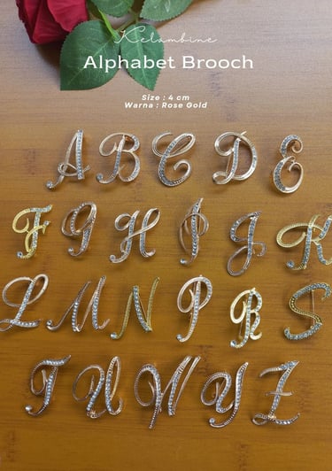 "Temukan gaya elegan yang dikagumi banyak orang! Bros huruf cantik dari Kelambine hadir untuk melengkapi penampilanmu. Pilih inisial favoritmu, tersedia warna Rose Gold & Silver ✨"